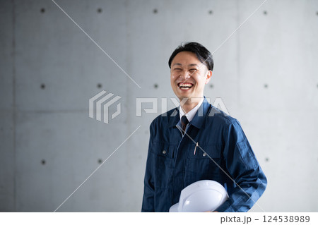 Asian construction engineer, Japanese builder worker male working inspecting footing house building.