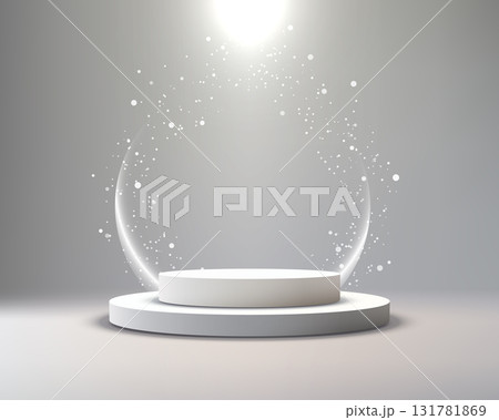 3D podium with round glass morphism decoration