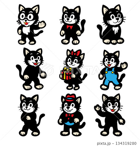 Cute Cartoon Black Cat Character Set in Various Poses