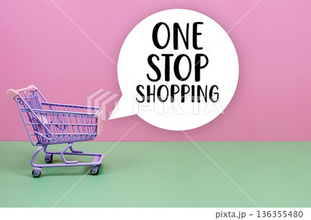 One Stop Shopping text with trolley shopping cart
