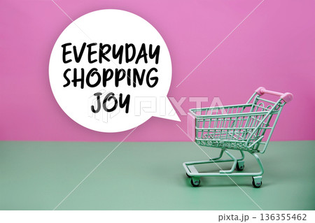Everyday Shopping Joy text with trolley shopping cart