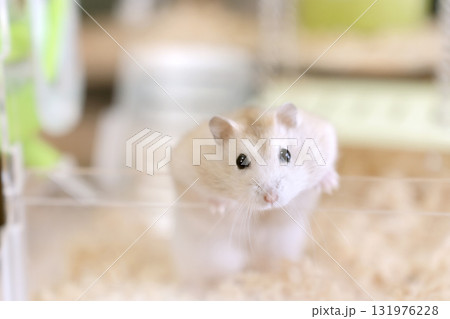 [相模原市麻溝公園動物遊樂區,一歲兒童正在看倉鼠]
