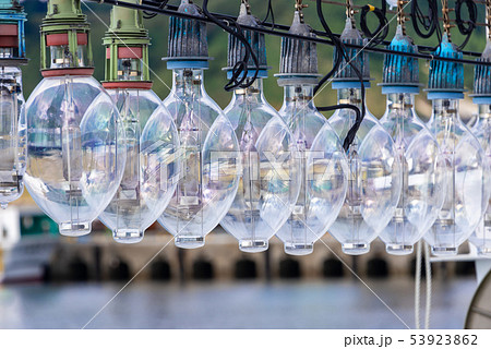 Kagabashi漁船(Hashidate漁港Ishikawa縣加賀市)的釣魚燈