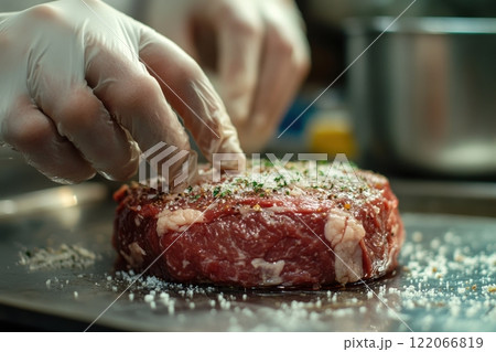 Cooking a juicy beef patty kitchen culinary process indoor close-up food preparation for burgers
