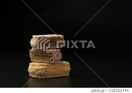 Close up of colorful macaroon dessert in vintage pastel colors - AI generated image