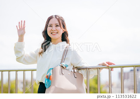 女商人在會議上揮手(問候,很快再見,早安)