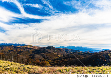 從禦嶽山眺望八嶽和富士山。