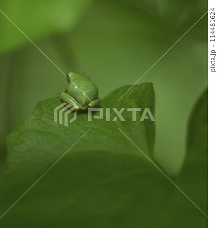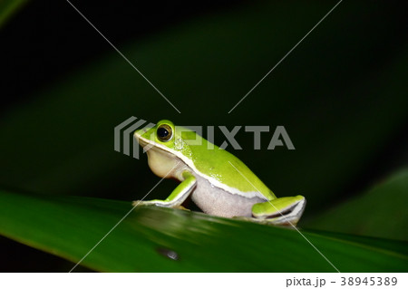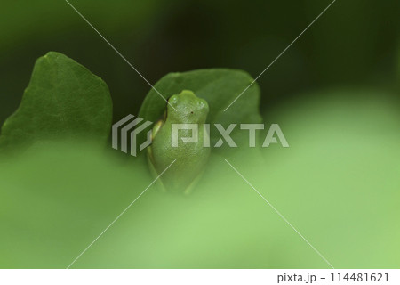草叢裡的綠色諸羅樹蛙特寫