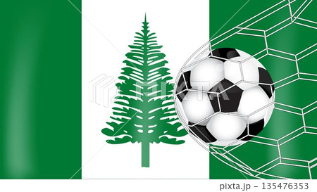 Norfolk Island Soccer Background: Waving National Flag with Soccer Ball Hitting Goal Net, Pacific Island Football Team Graphic for Sports Marketing