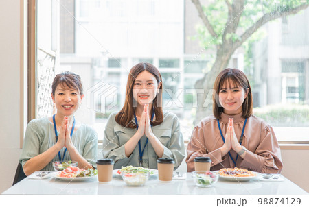 舉辦女生派對的女性朋友,同事,朋友,媽媽朋友,咖啡廳,餐廳,餐廳,員工食堂(福利)的午餐