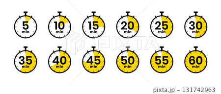 set of stopwatch 5 to 60 minute timer countdown icon design