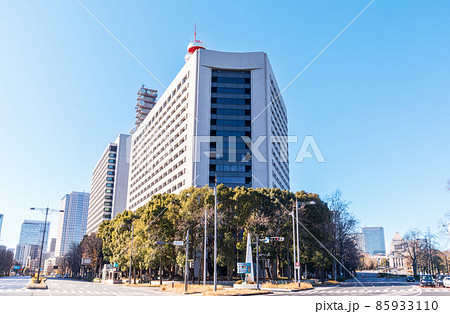 東京都千代田區霞關市警視廳本部大樓及顯示交通事故死亡人數的電子公告板