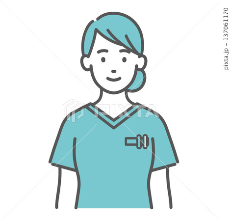 身穿手術服的女醫務人員插圖(微笑,上半身)