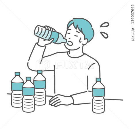 圖:一個口渴的男人正在大量飲水(糖尿病、過度飲水、口乾、中暑)