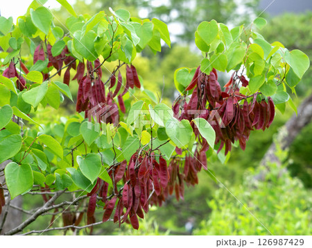 豆科紫荊屬落葉開花喬木,豆莢呈紫紅色