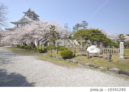 滋賀縣長濱市公園町豐公園內的長濱城(長濱城歷史資料館)及櫻花、桃花的景色
