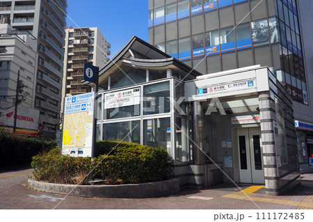日本東京城市景觀:電車和坡道駛入大塚站前站。背景為大塚站(10)。