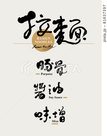 書法文字“拉麵,豚骨,醬油,味增”,手寫字,標題字,標誌向量圖形