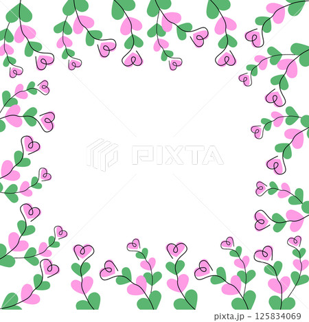 Symbolic heart shape twigs against heart shape spots pink and green Frame border Copy space Template