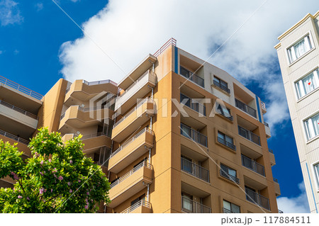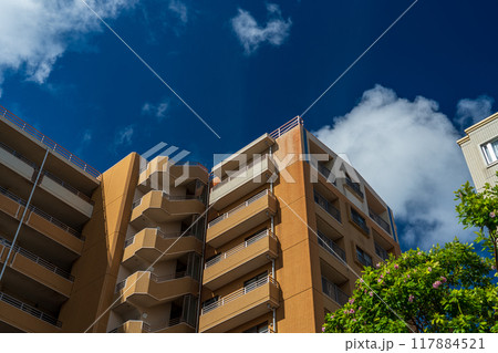 高層公寓和藍天