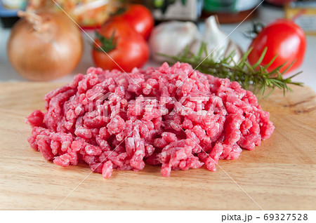 蔬果氣氛背景呈現新鮮健康的絞肉食材特寫