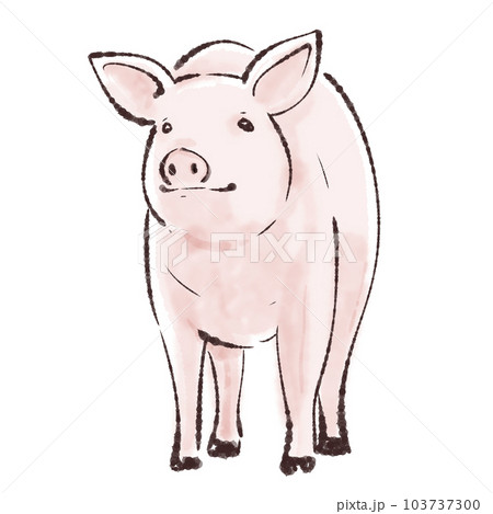 牲畜和十二生肖的象徵。一隻豬側站立的簡單剪影插圖。豬肉菜餚、餐廳、火腿