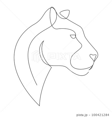 Puma, lioness, jaguar head line art drawing. Continuous one line drawing silhouette. Leopard for company logo identity or tattoo.