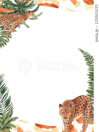 Frame of Leopard wildlife watercolor hand drawn