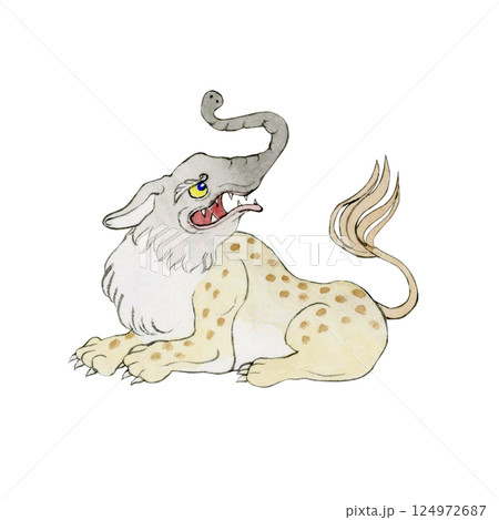 巴庫,中國傳奇生物,神聖的野獸,水彩插圖