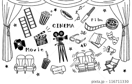 電影院插畫集手繪黑白線描
