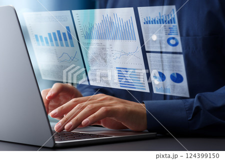 Business Data Analysis Meeting Room Financial Report Charts Graphs Laptops Workspace Office Desk Marketing Strategy Planning Accounting Statistics Visualization Digital Information Technology