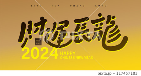 “財運長龍”,龍年趣味賀詞,可愛手寫字風格,賀卡素材。