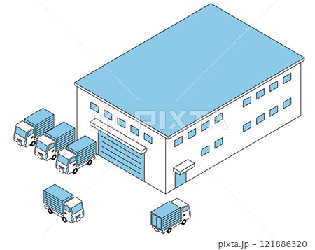 配送倉庫和卡車排列的插圖