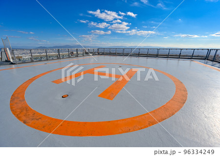 藍天背景下的直升機停機坪
