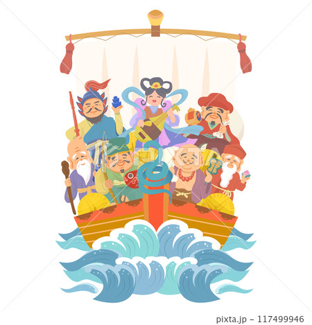 七福神的可愛插圖