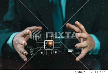 Step into the realm of advanced technology as two hands protection of AI. Artificial Intelligence AI and machine learning enhance personalized learning. online learning personal development concept.