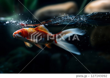 Contrast and elegance merge in a koi illuminated under dim light