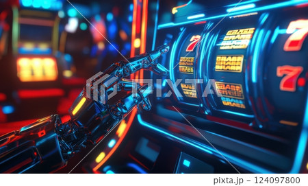 The vibrant and colorful atmosphere of neonlit casino slot machines for fun and entertainment