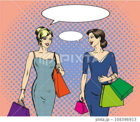 Vector illustration of shopping women in retro pop art style