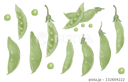 水彩手繪豌豆素材組(甜豌豆、青豌豆、青豌豆)