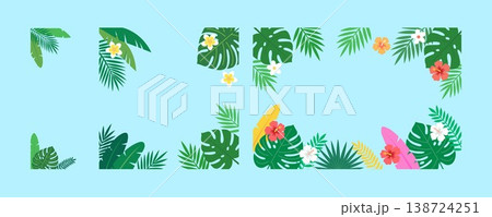 Tropical Leaves and Exotic Flowers Decorative Frame Vector Set