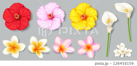 Collection of Tropical Flowers on Transparent Background