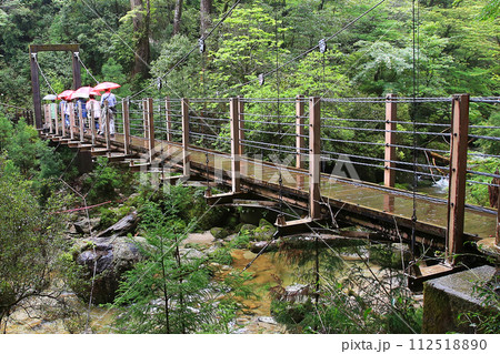 日光市:龍王峽遠足徑(自然步道)、健行者和新鮮的綠色植物