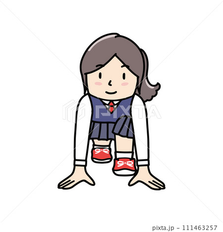 蹲下開始插畫:一名女商人穿著西裝站在起跑線全身側身