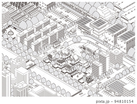城市景觀的三維視圖 城市景觀 線描插圖。