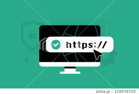 What is https concept. Stay safe online with HTTPS hypertext transfer protocol. Flat Design illustration with browser address bar and padlock icon, and website start with https text