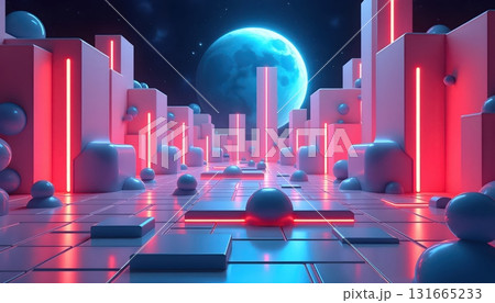 Surreal Digital Architecture of Glowing Gradient Blocks in Darkness