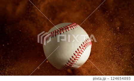 Freeze Motion Detail Shot of Baseball Ball with Clay Explosion