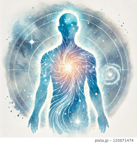這是一種圖像藝術,在粗糙的藍黑色地質背景周圍旋轉時,耀眼的光能被吸入。