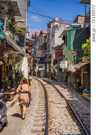 Hanoi train street, old house and railroad in Hanoi, Vietnam
